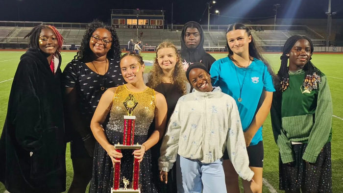 Our 2025 program is titled "Out There," featuring the music of Creed, David Bowie, and Pink Floyd. Student leaders of the marching band are: Lauren Smith, Hannah Velez, Samara Thomas, Isabella Thomas, Maya Rivera, Darryl Thompson, and Christina Munford. Many thanks (and congratulations!) to all our seniors: Andre Carmichael, Nathan Downey, Zatori Green, Shaneese Johnson, Ginger McCarty, Eliza Medley, Christina Munford, Taryn Mozee, Francisco Perez-Martinez, Maya Rivera, Nevaeh Rowe, Nathan Sin, Lauren Smith, Isabella Thomas, Samara Thomas, Angelina Tirado, Hannah Velez, and Zion Young.